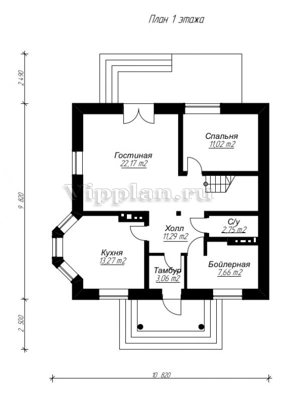 | Размеры дома: | 10.82м×9.82м |