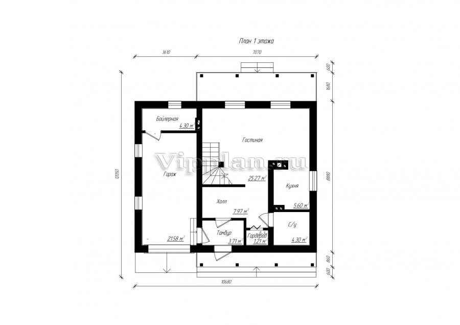Проект индивидуального двухэтажного одноквартирного жилого дома с размерами 10,68 x 8,88 м.