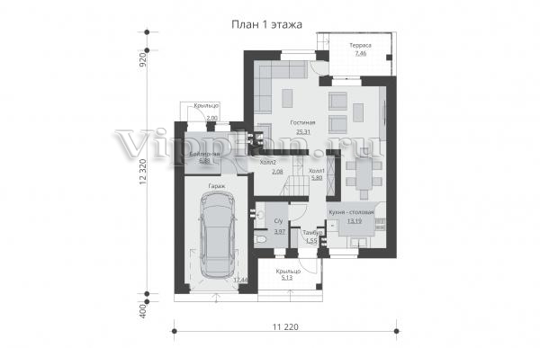 | Размеры дома: | 12.32м×11.22м |
