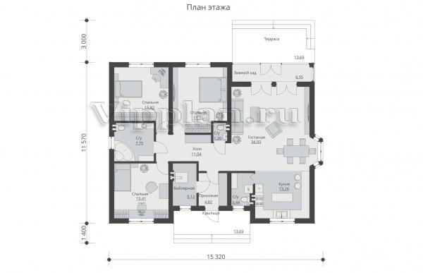 | Размеры дома: | 11.57м×15.32м |