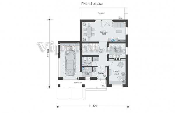 | Размеры дома: | 11.32м×11.82м |