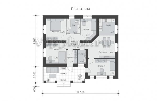 | Размеры дома: | 11.26м×12.56м |
