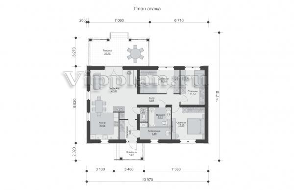 | Размеры дома: | 14.11м×13.97м |